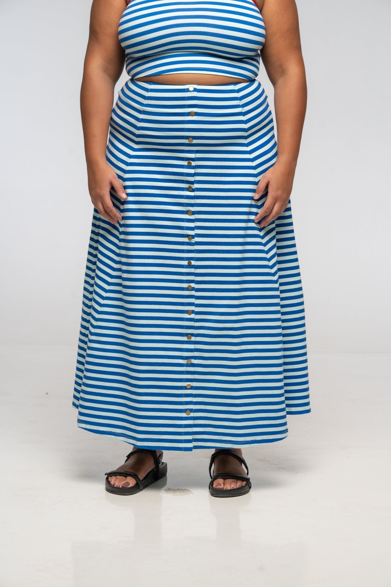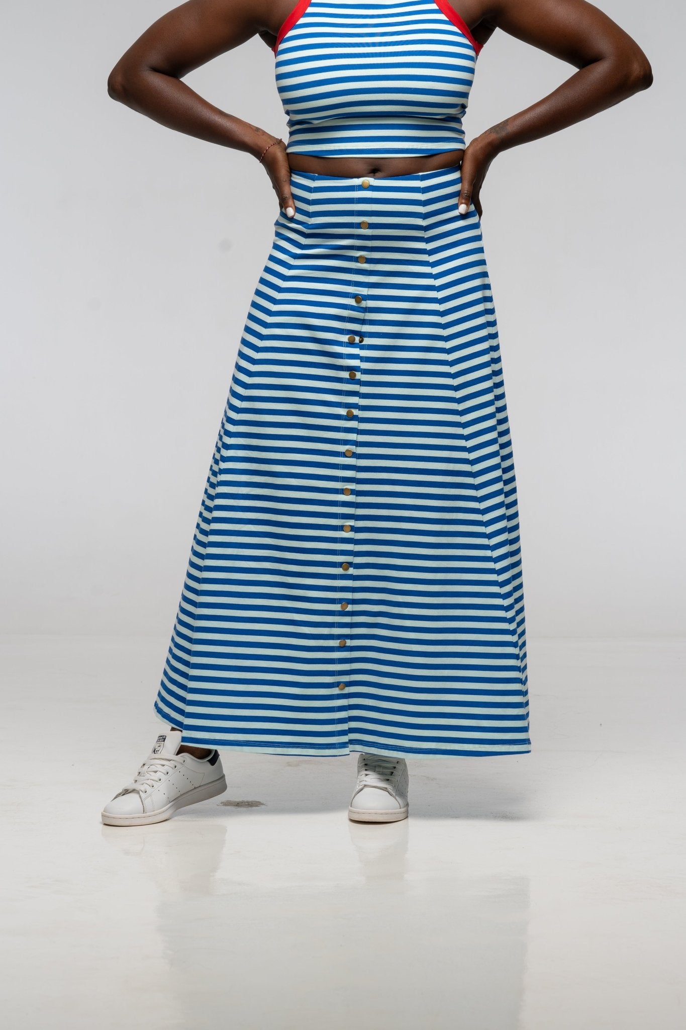 A-line midi with popper front! summer dream (also I see this in winter with tights and boots so this will take you through the whole year and back again)