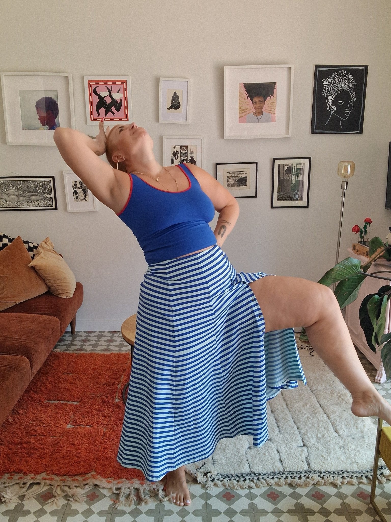 Every piece is made from the thickest dreamiest-creamiest-smoothiest stretch fabric. To be stretched and pulled and washed at the wrong heat and left on the line too long, screwed up in bags with muddy boots and danced all night in and still be your favourite piece of clothing every time. Because we know life is messy so you need clothes as strong as you.