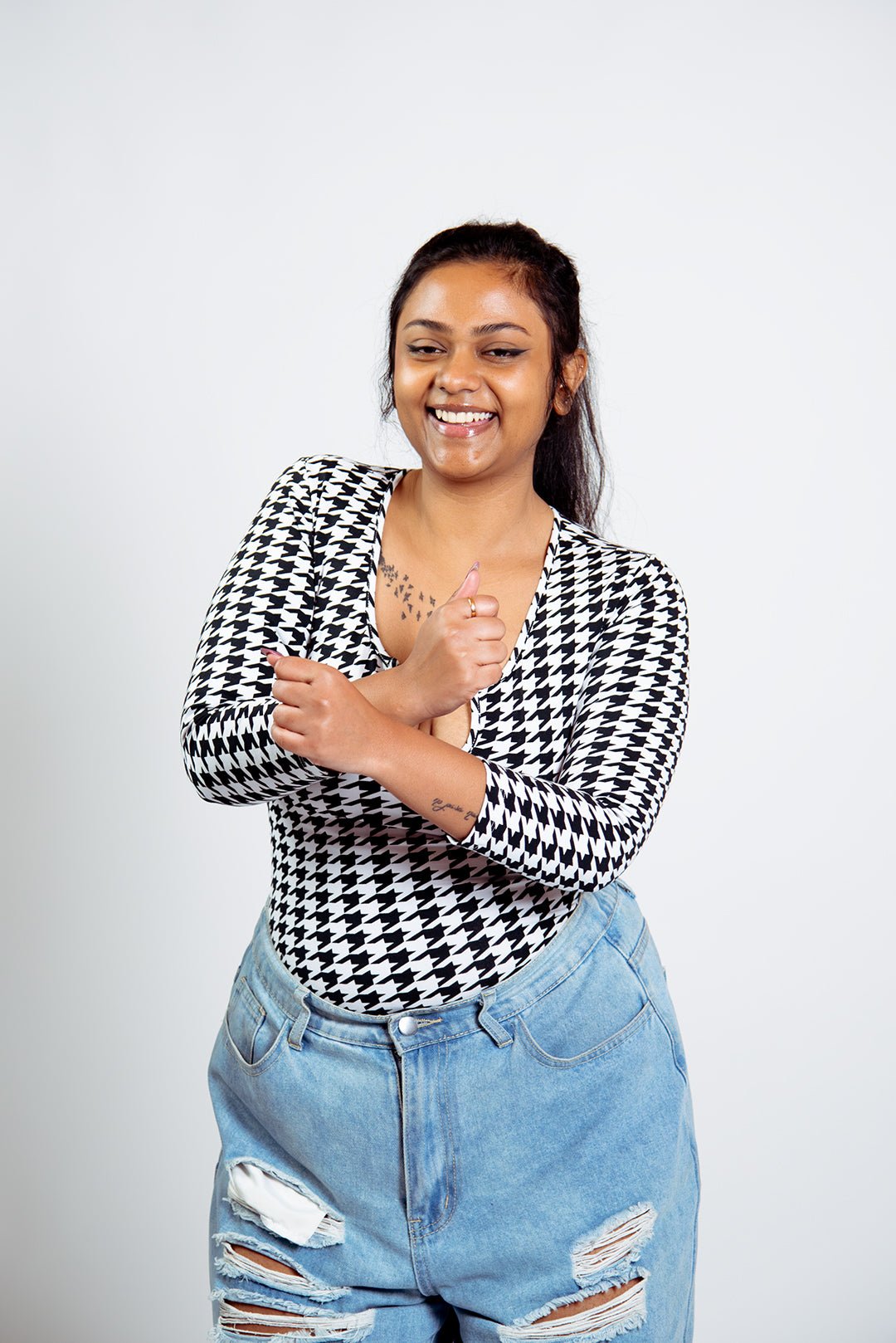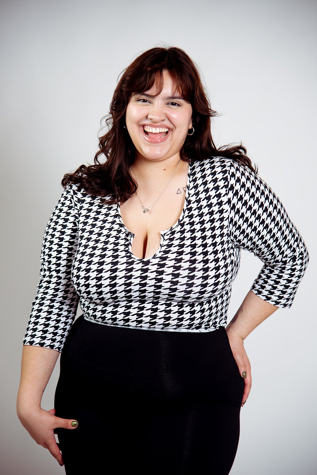 U Front Full Length Top 6/7 sleeves in Houndstooth Print