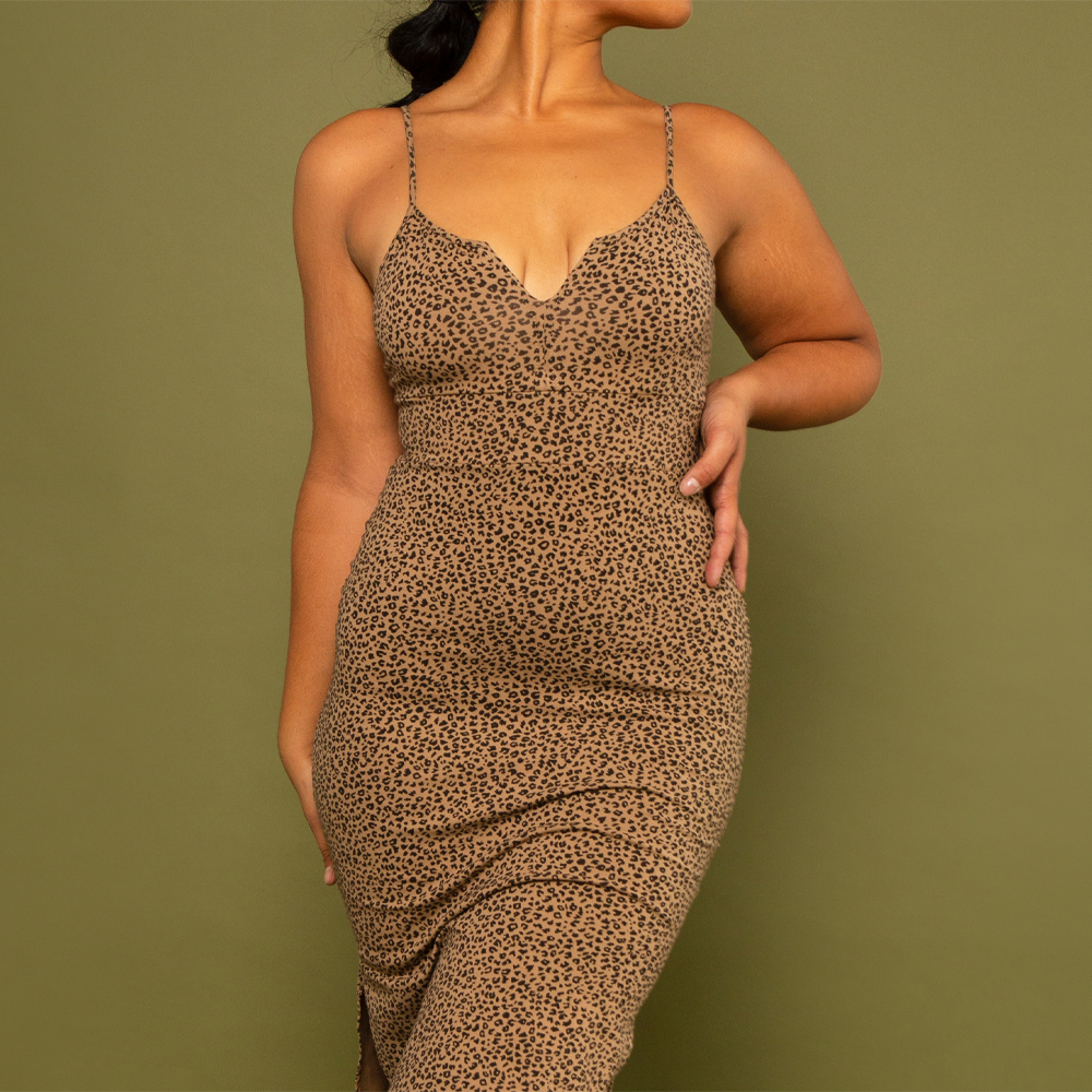 Kala Dress Midi Petite in panel Black/Classic Leopard