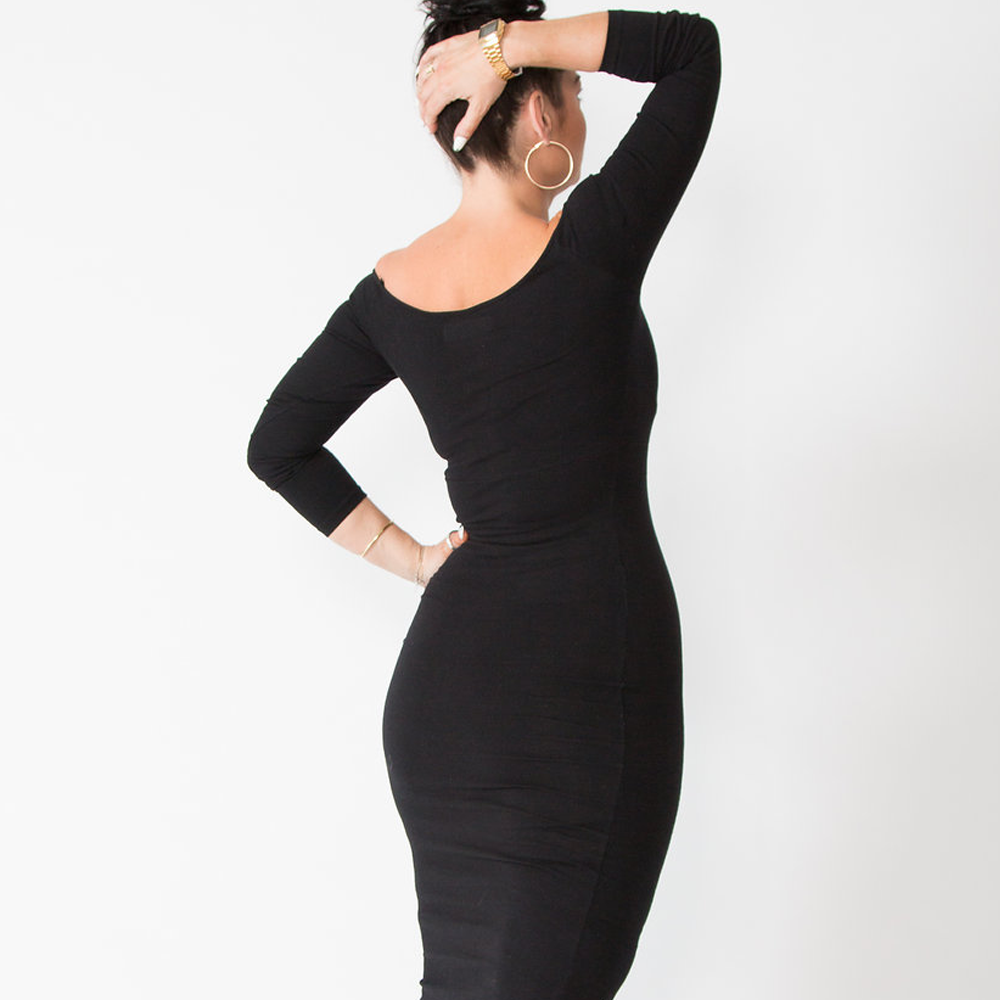 Zip Midi Dress 3/4 Sleeve in Black