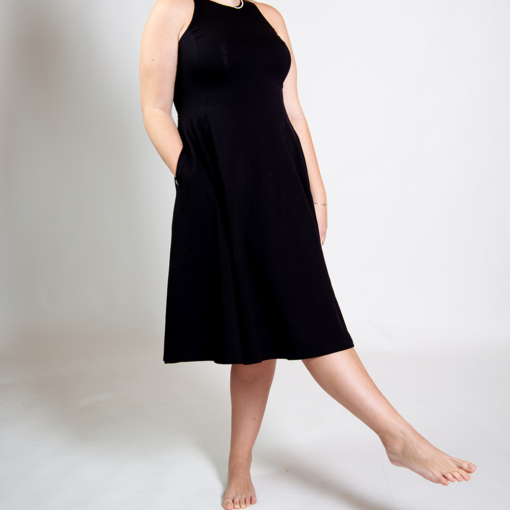 U Front Dress Midi Regular A-line (6/7 sleeves) in Black