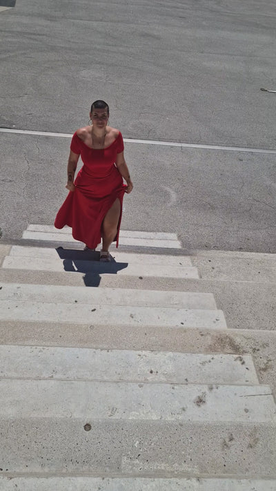 Bardot Midi A-Line Dress in Pomegranate Red