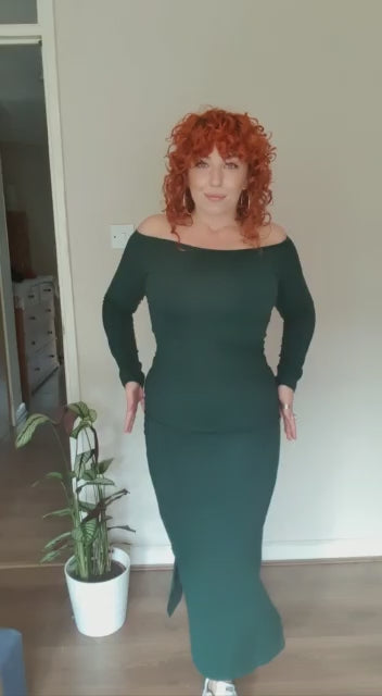Asri Leki Dress Midi 3/4 sleeve in Forest Green