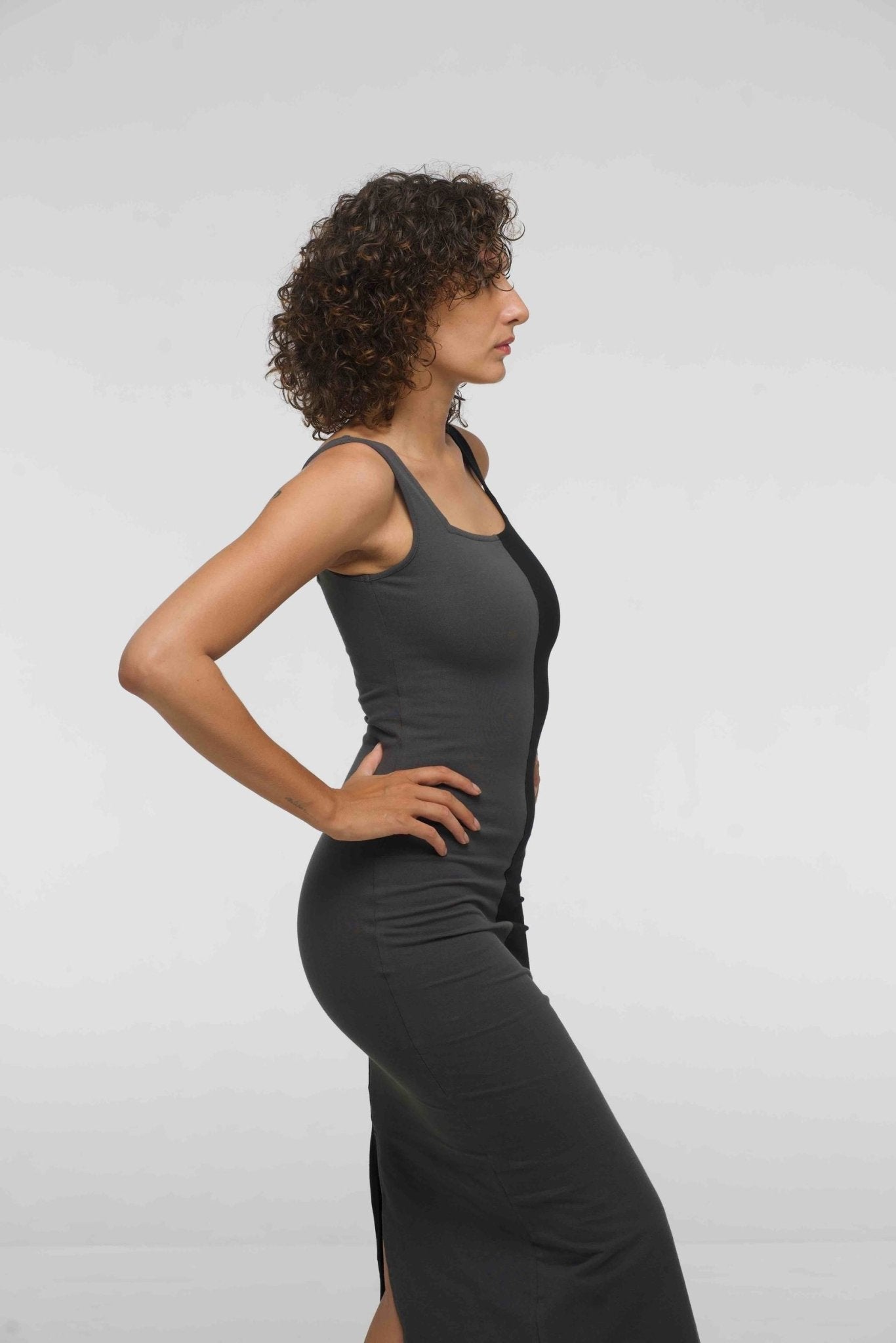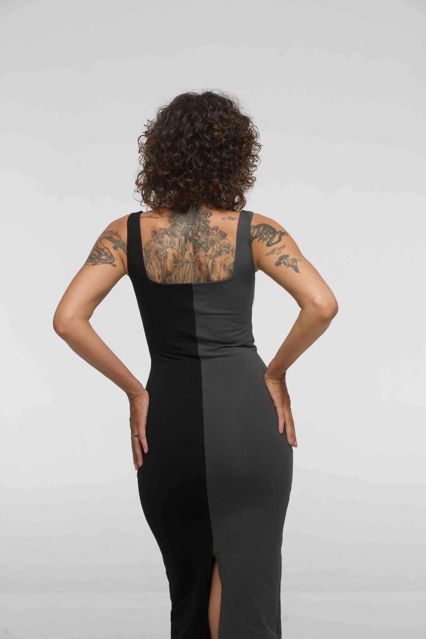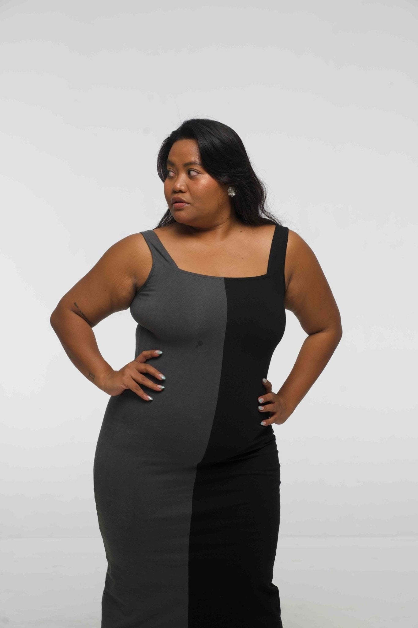 Ok ok! This is extra special! The first square neck dress. The first half and half dress! Midi length with a little split in the back so you can still run, dance, hop on a bike, whatever your summer looks like, just imagine it in this dress!