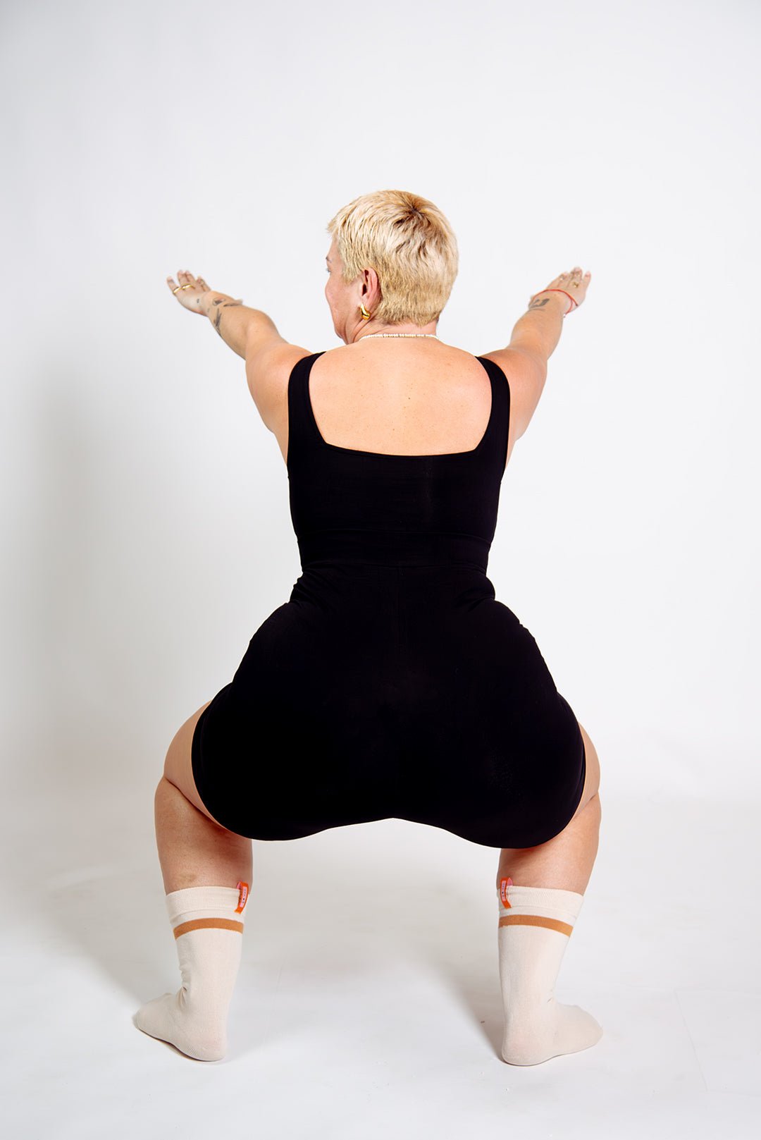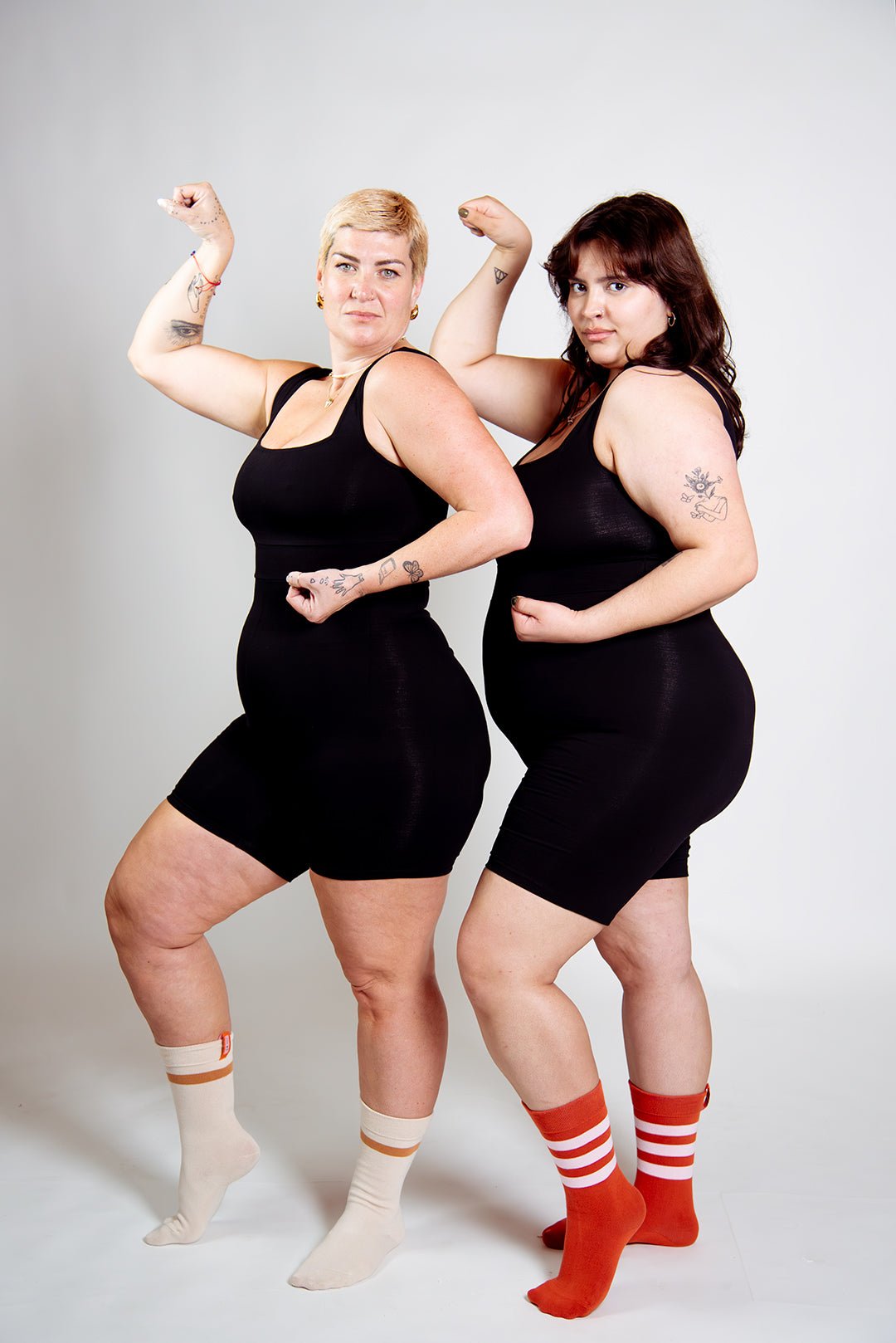 The fabric used for all Manners London pieces is super thick heavyweight stretch cotton. It has a huge stretch allowance without going see through at all! On arrival items will look small but don't be scared, its just the nature of the fabric and what makes it so deliciously smoothing and shaping and magical!