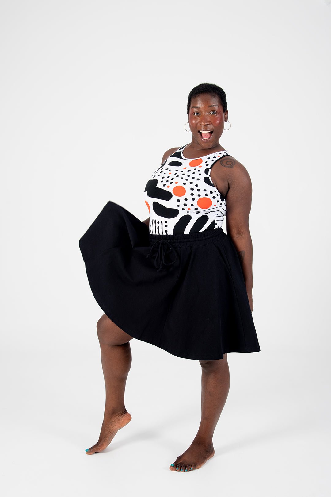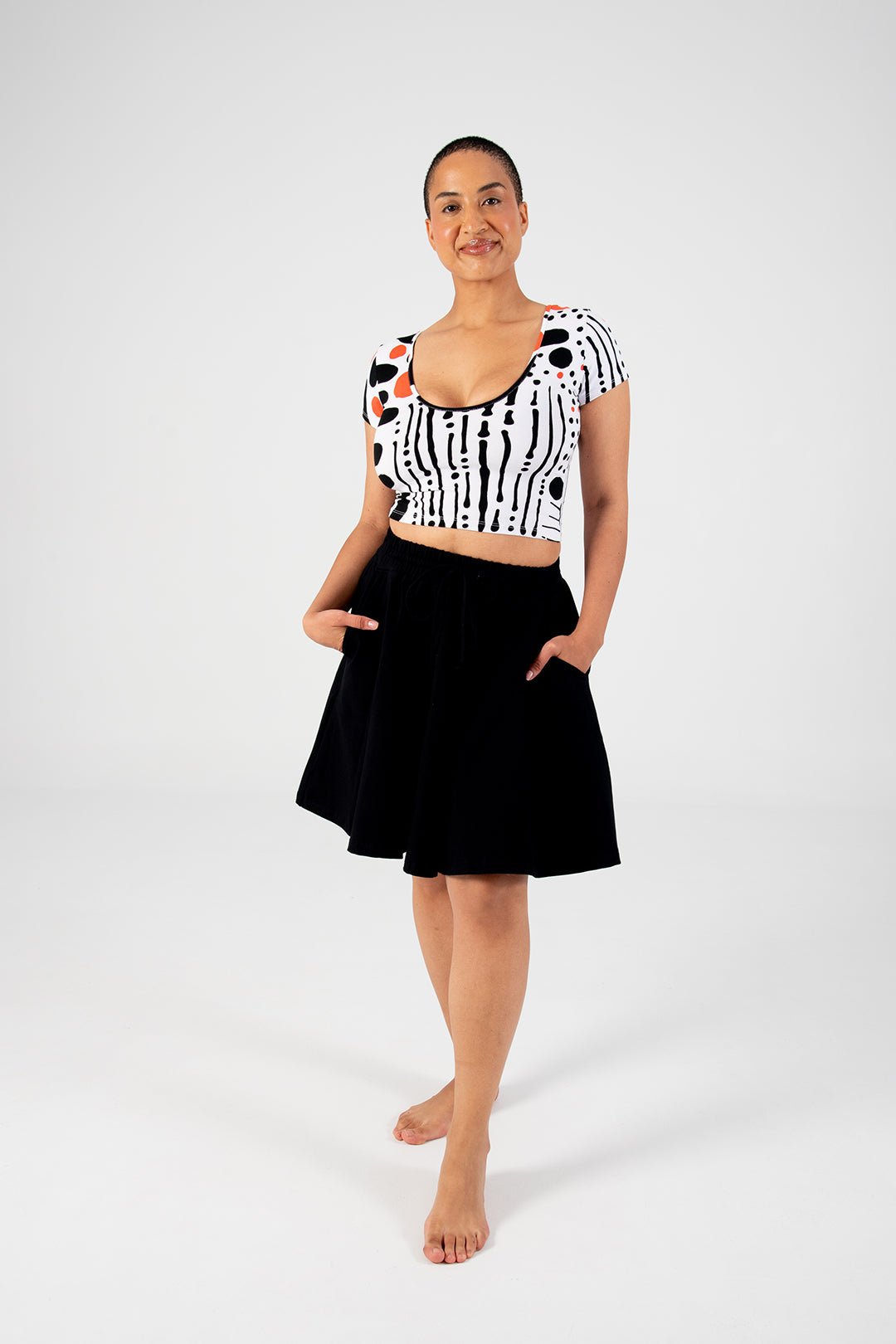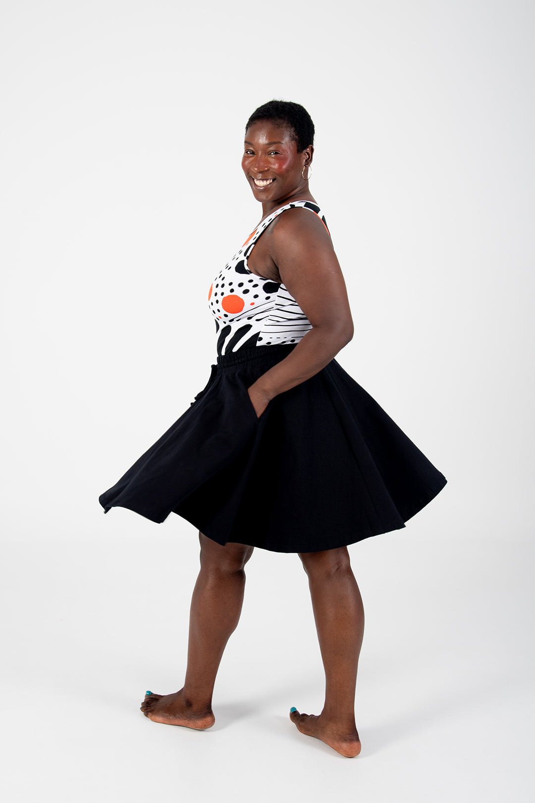 Every piece is made from the thickest dreamiest-creamiest-smoothiest stretch fabric. To be stretched and pulled and washed at the wrong heat and left on the line too long, screwed up in bags with muddy boots and danced all night in and still be your favourite piece of clothing every time. Because we know life is messy so you need clothes as strong as you.