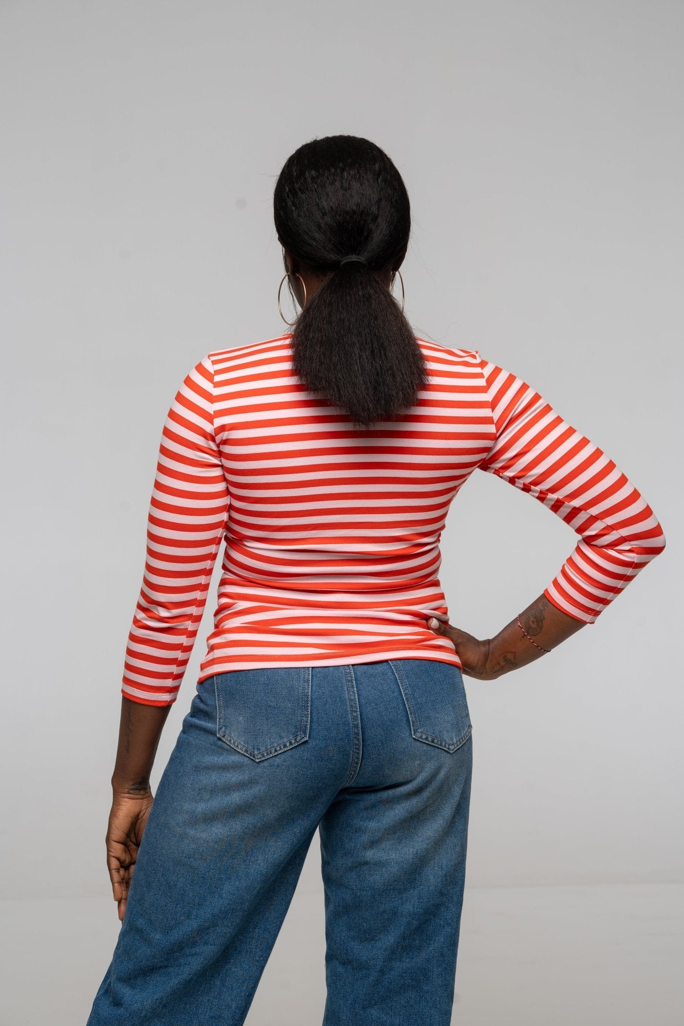 U Front Full Length Top (7/8 sleeves) In Tomato red on Bubblegum Pink!