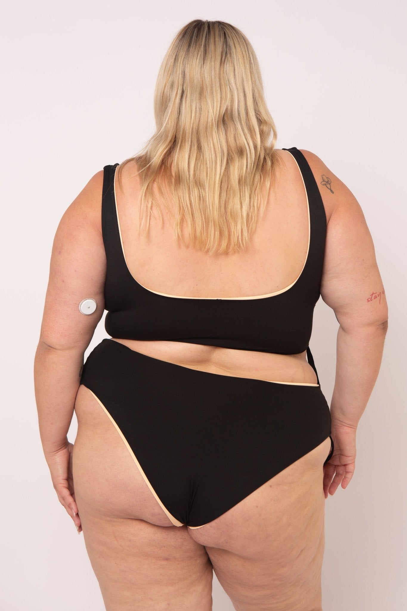 This is the perfect cheeky Brazilian style cut. A little butt, a little cover (and you can flip it front to back for more front cover and less back or vice versa)! You know how much I love multi-wear pieces and this cheeky high waist does it all!