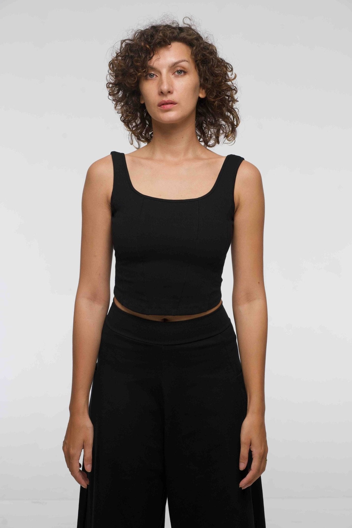 Corset Panelled Mid Crop Top in Black