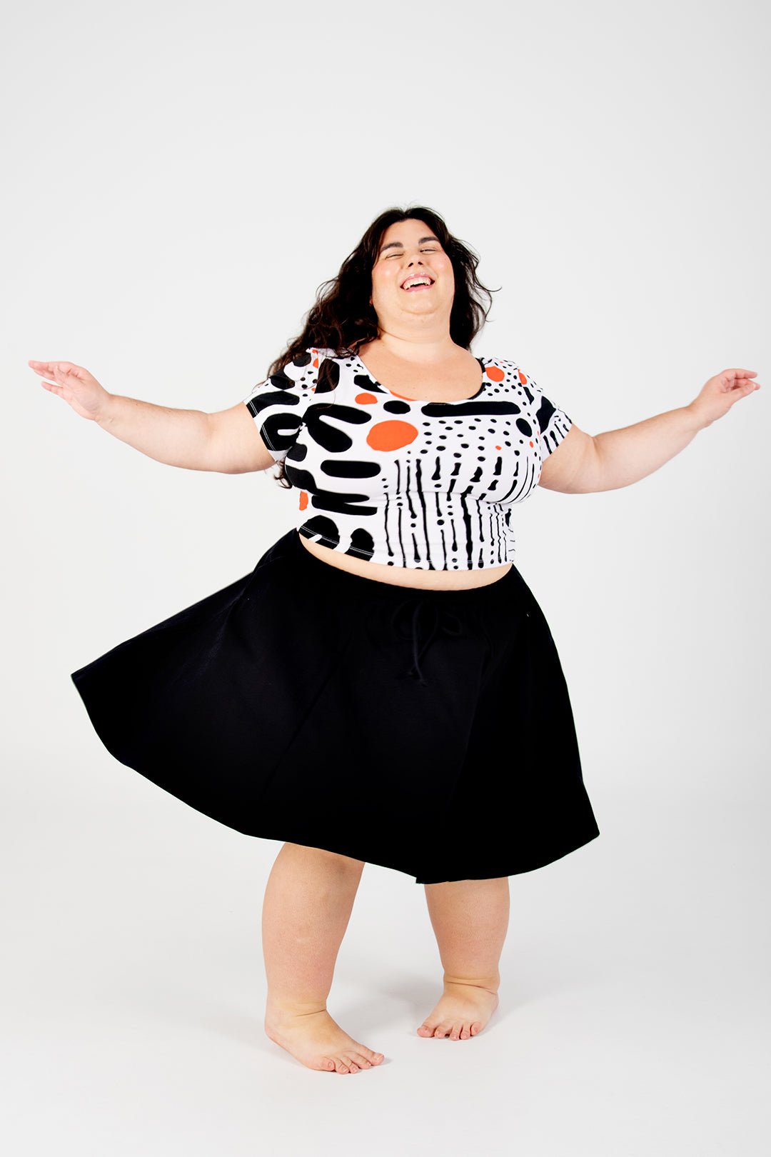 Every piece is made from the thickest dreamiest-creamiest-smoothiest stretch fabric. To be stretched and pulled and washed at the wrong heat and left on the line too long, screwed up in bags with muddy boots and danced all night in and still be your favourite piece of clothing every time. Because we know life is messy so you need clothes as strong as you.