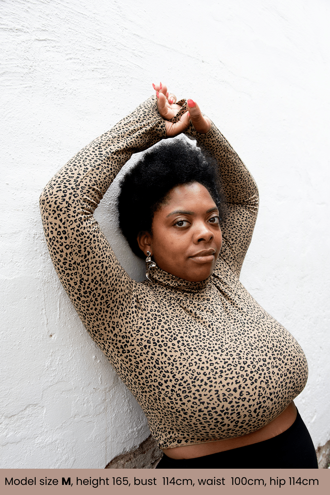 Turtle Neck Long Sleeve Crop Top with Hole in Classic Leopard