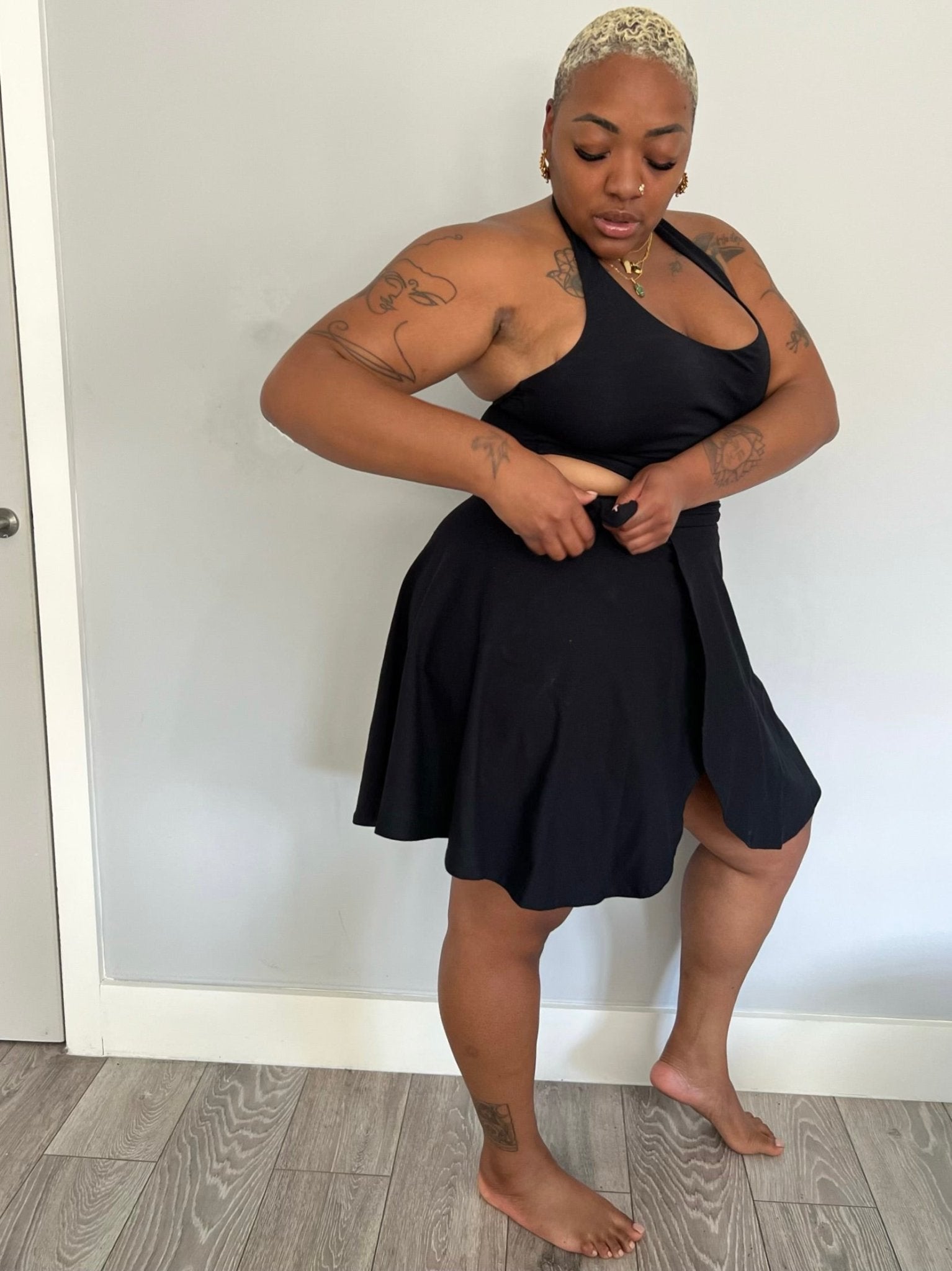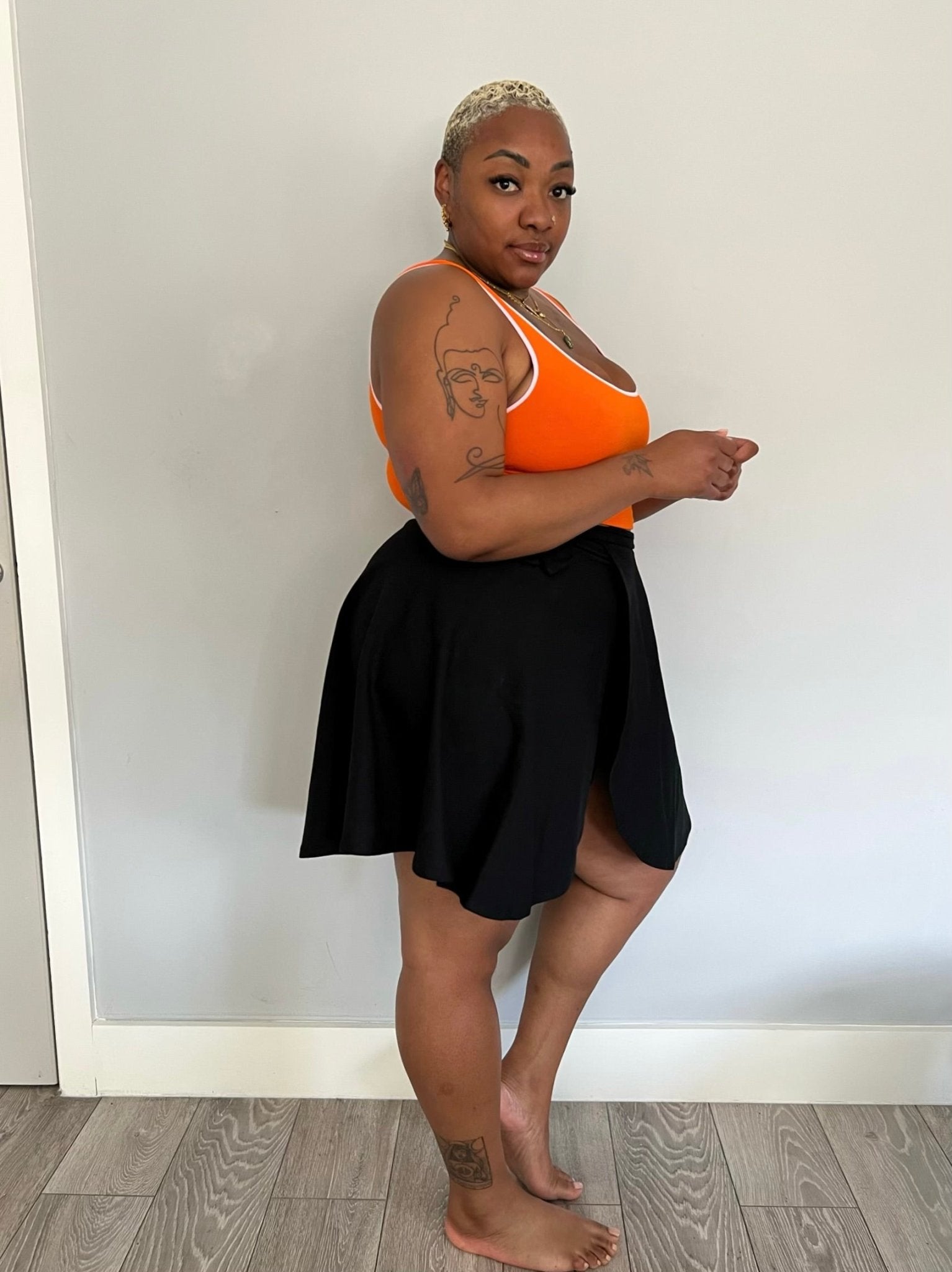 The fabric used for all Manners London pieces is super thick heavyweight stretch cotton made of 90% cotton 10% elastane. It has a huge stretch allowance without going see-through at all! On arrival items will look small but don't be scared, it's just the nature of the fabric and what makes it so deliciously smoothing and shaping and magical!