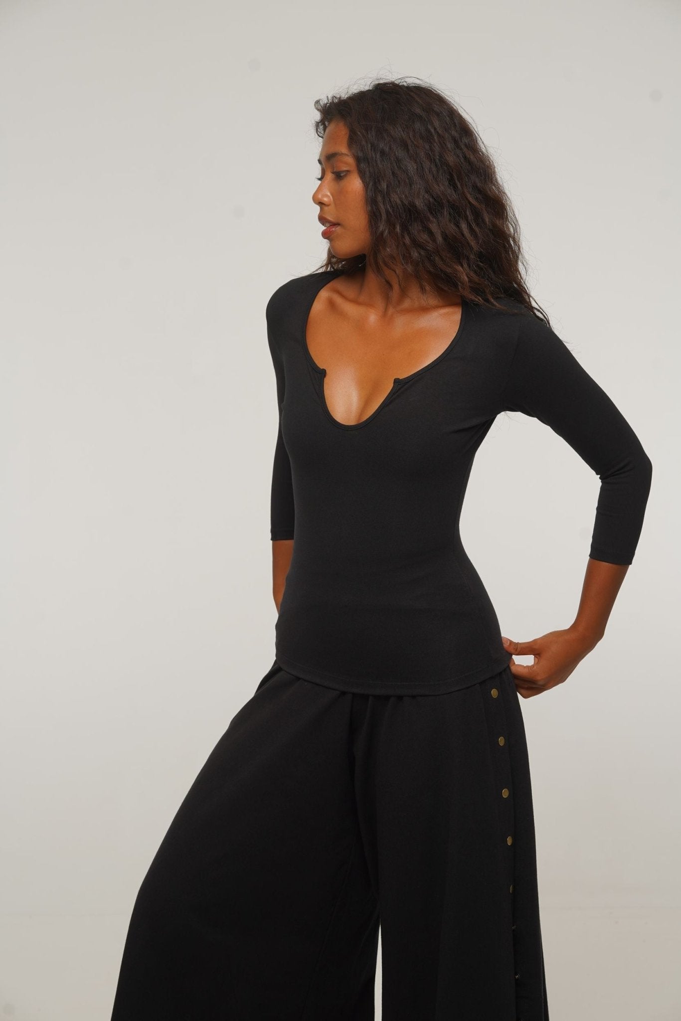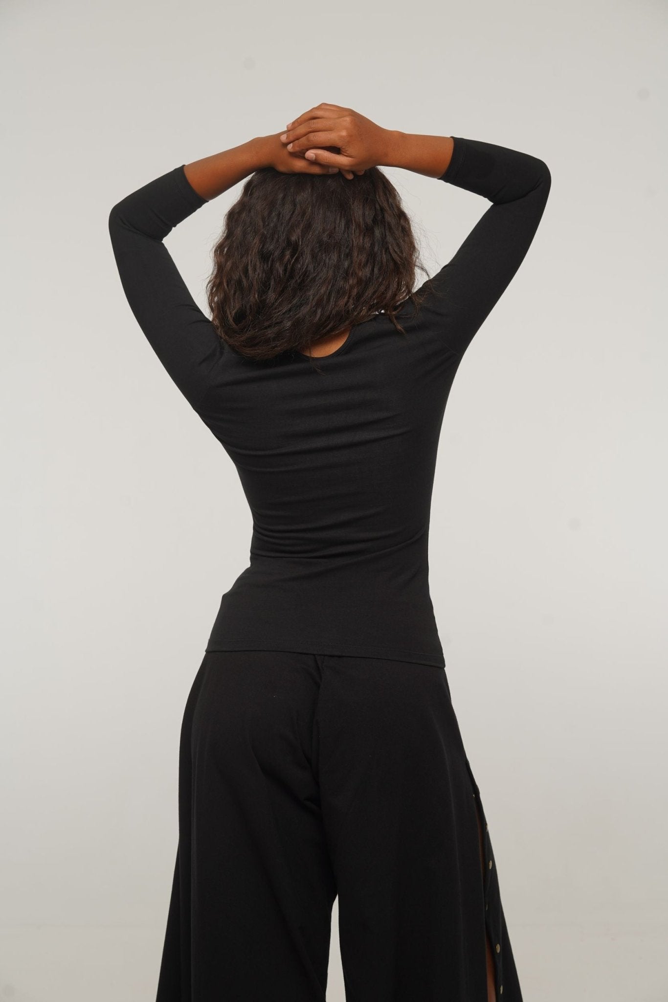 U Front Full Length Top with sleeves in Black