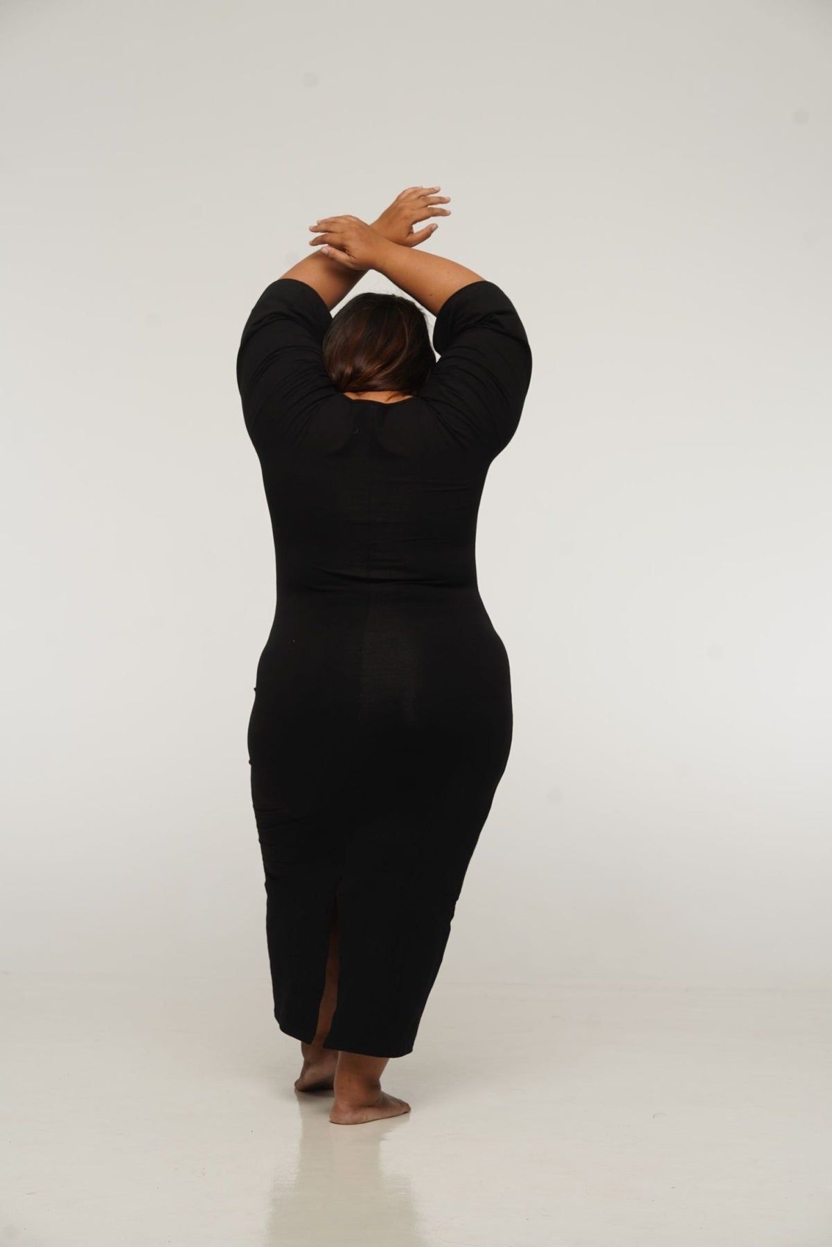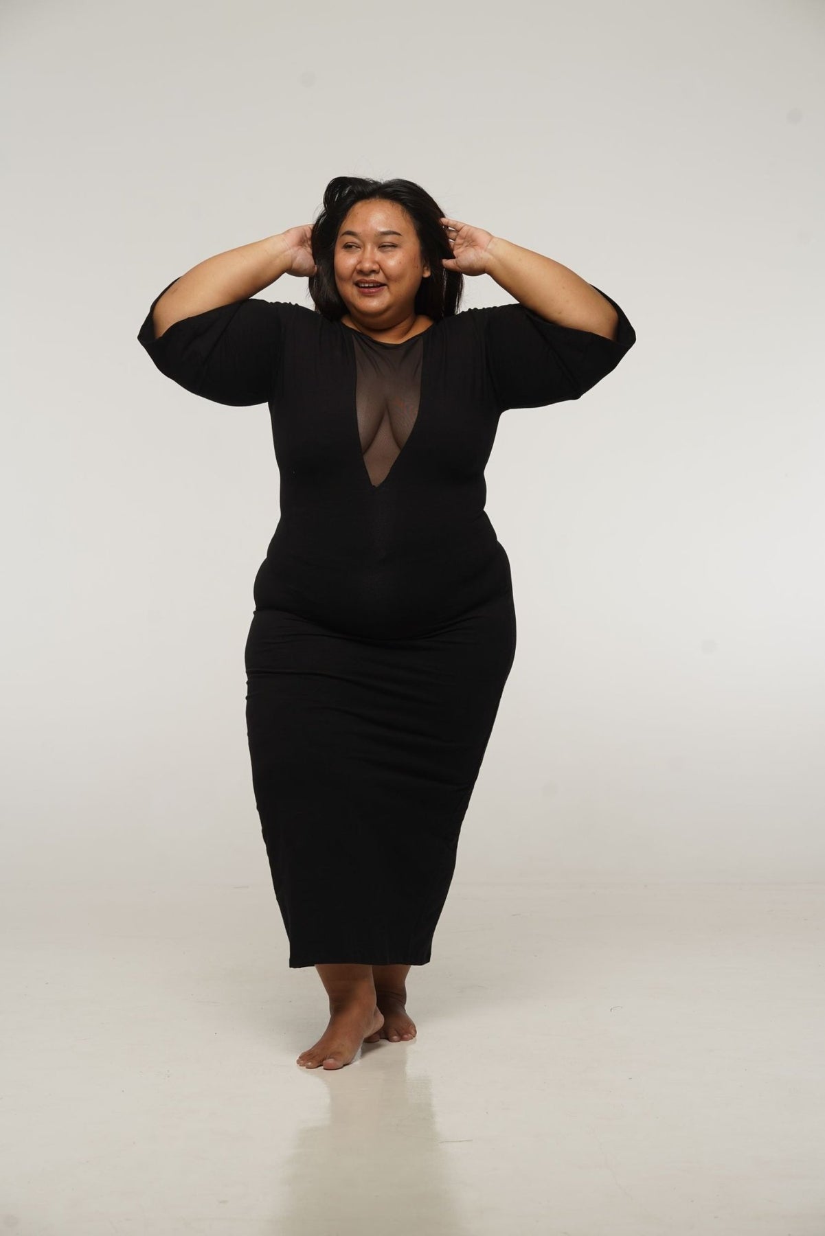 The fabric used for all Manners London pieces is super thick heavyweight stretch cotton made of 90% cotton 10% elastane. It has a huge stretch allowance without going see-through at all! On arrival items will look small but don't be scared, it's just the nature of the fabric and what makes it so deliciously smoothing and shaping and magical!